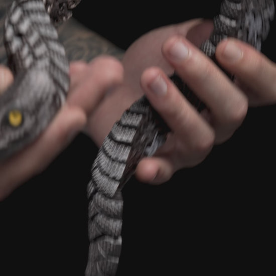 The bush vipers are venomous serpents that can grow up to 24 inches, but we decided to challenge nature and create a viper with customizable length! You can print the middle body section multiple times and have it be as long as you want. For an amazing color effect, we recommend using rainbow or duocolor filaments. We would love to see how far you've gone, so make sure to post some pictures of the final product to our community!